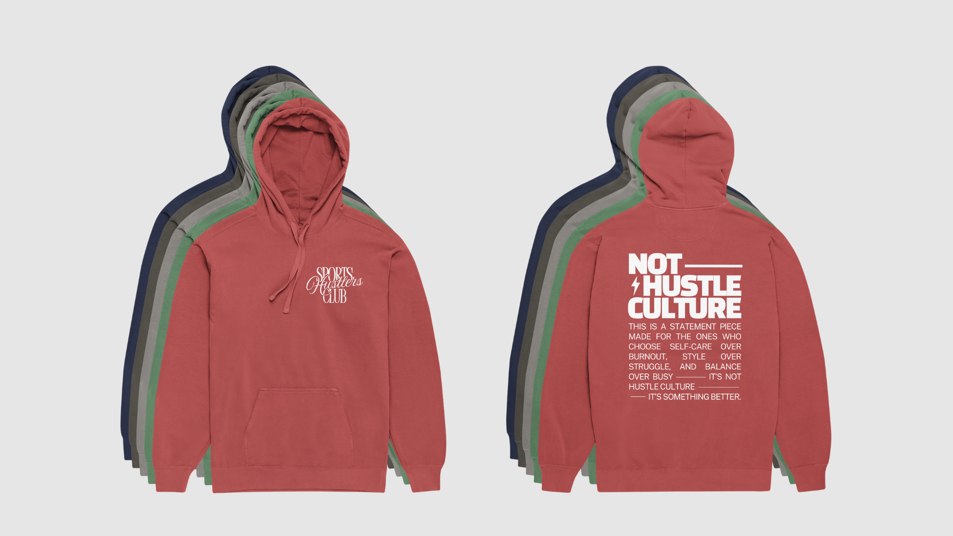 a staple for those building from the inside. the founders hoodie features a clean, timeless design that reflects the spirit of hustlers sports club — quiet confidence, discipline, and club identity.